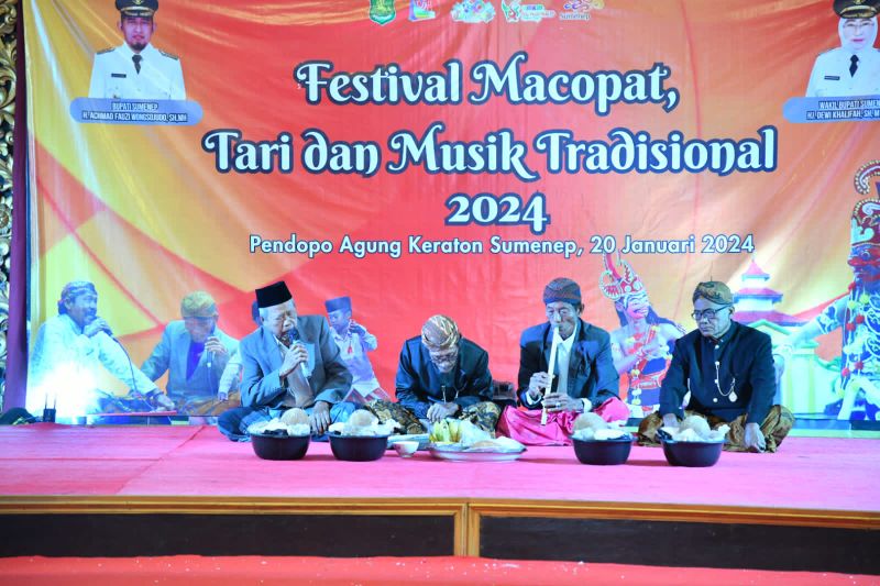 Diketahui, festival macopat, seni dan musik tradisional berlangsung di pendopo kraton Sumenep, Sabtu (20/1/2024) malam.